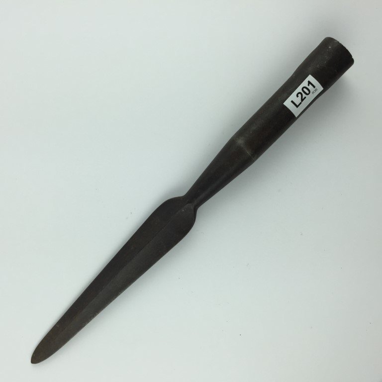 Punta de lanza en hierro forjado tipo palma, usada por el ejército argentino. Numerada 3626.