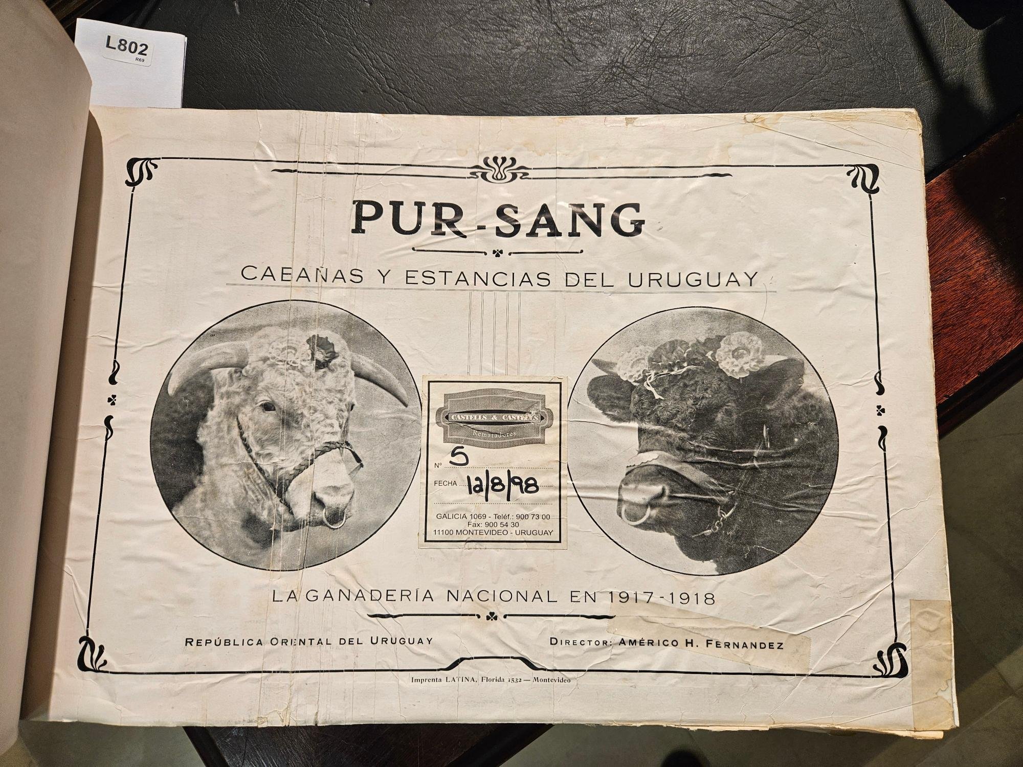 «Pur-Sang. Cabañas y estancias del Uruguay. La ganadería nacional en 1917-1918». 604 p. Encuadernación no original.