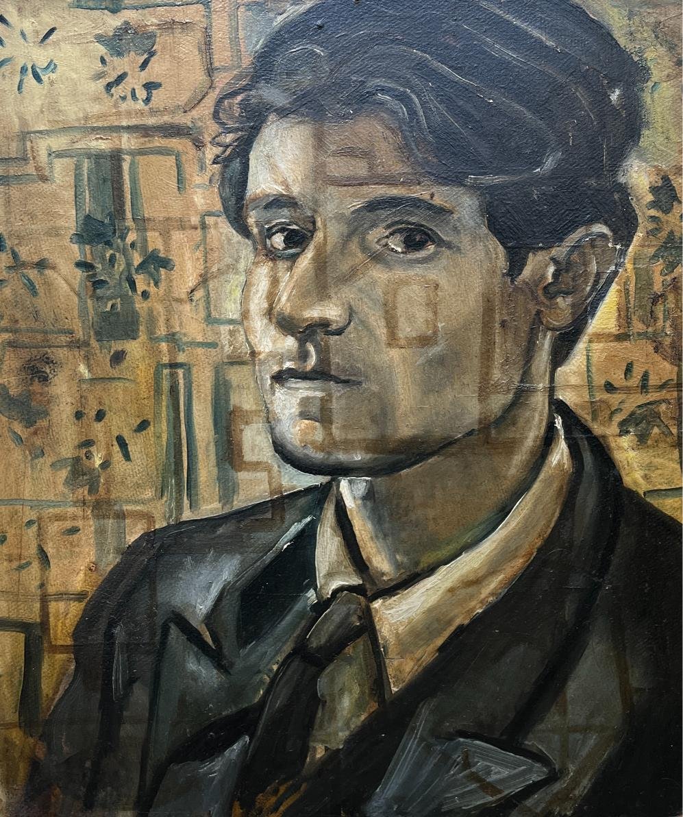 RAÚL JAVIEL CABRERA (Escuela uruguaya, 1919-1992) Óleo sobre cartón «Retrato de joven» 62 x 52 cm