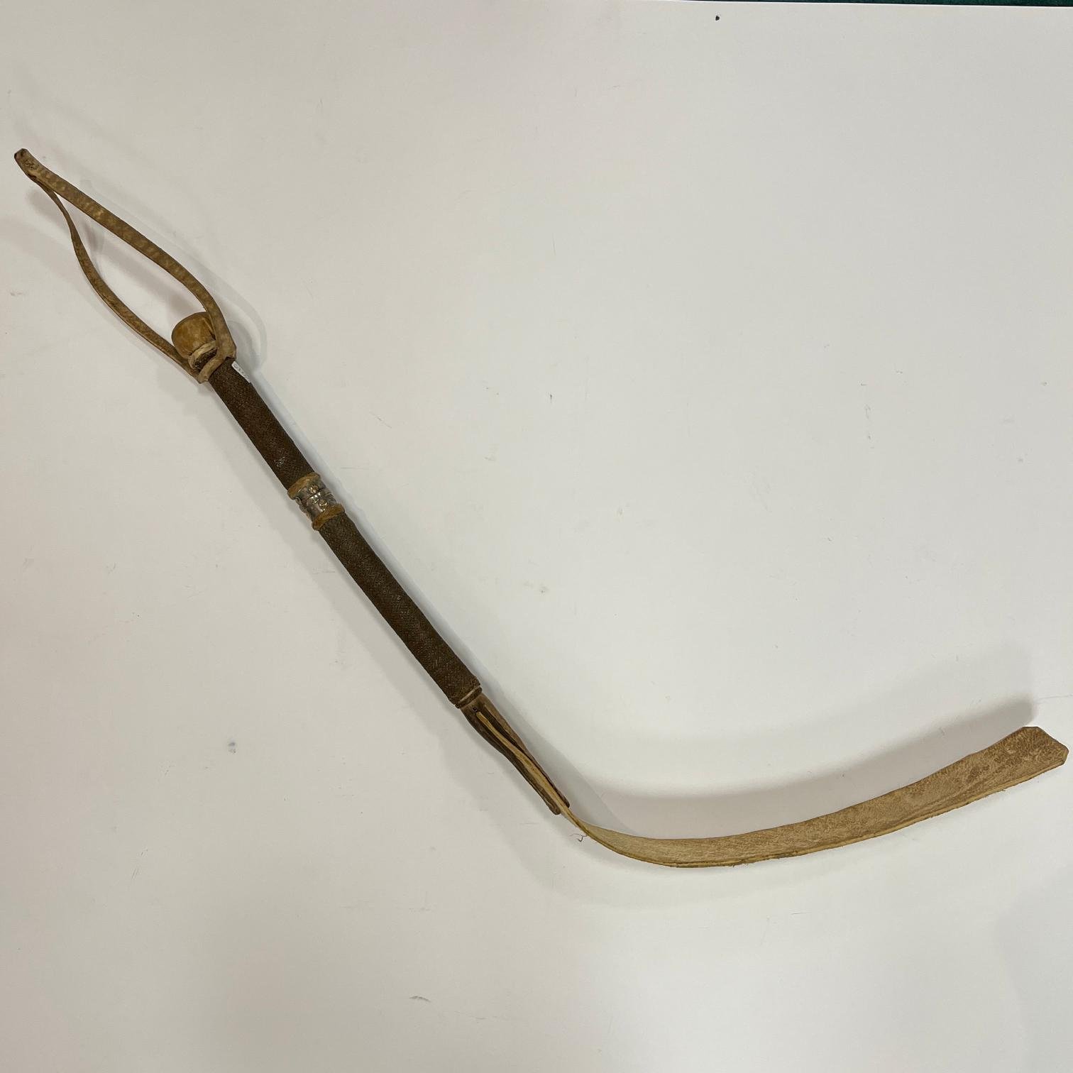 Rebenque forrado en fino cuero trenzado, con pasador en plata y oro.