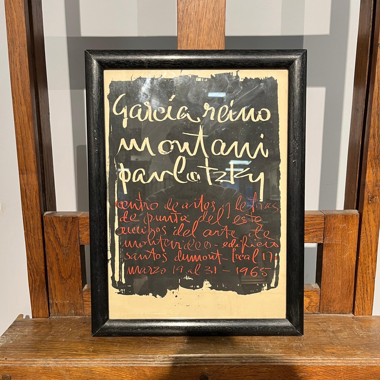 Afiche serigráfico para la exposición de los artistas Óscar García Reino, Andrés Montani y Raúl Pavlotzky realizada por Amigos del Arte de Montevideo en el Centro de Artes y Letras de Punta del Este en marzo de 1965