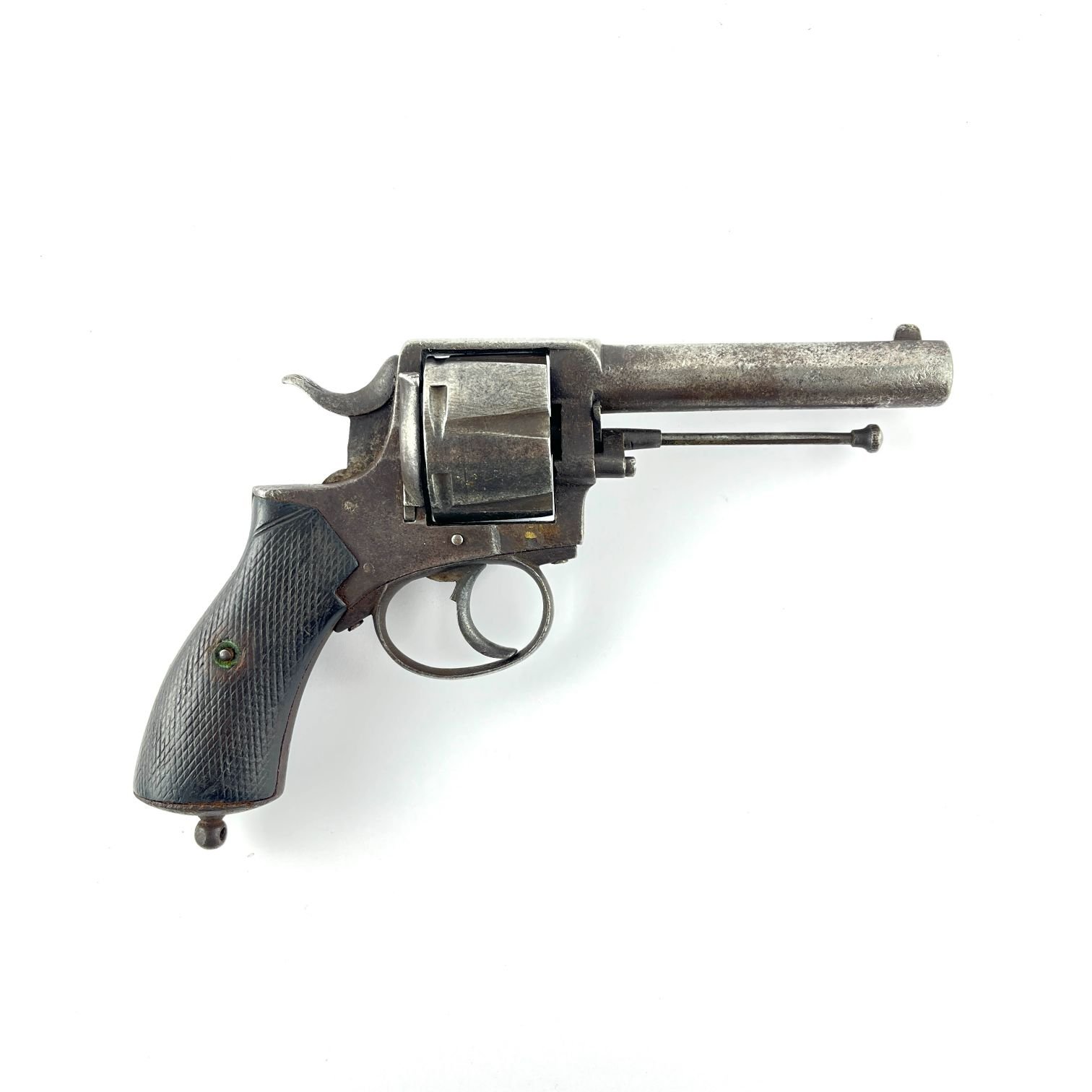 Revólver belga The British Constabulary calibre 450. Caño de 4 pulgadas. Cachas en madera segrinada. Desgaste en acción. Funcionando.