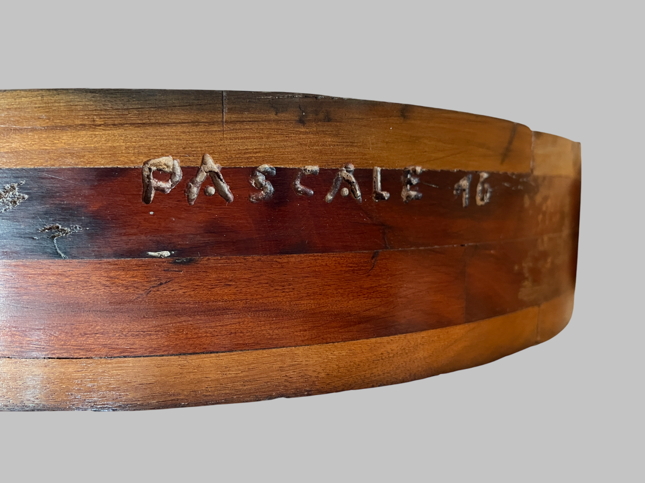 RICARDO PASCALE (Escuela uruguaya, 1942-2024) Escultura en madera «Rueda» Firmado y fechado «16» en lateral 40 x 8 cm