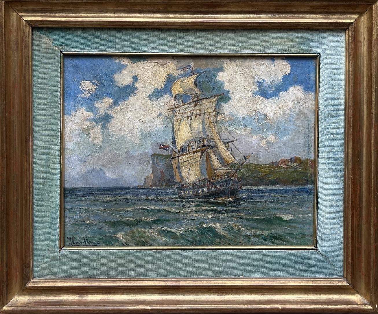 ROBERTO CASTELLANOS (escuela uruguaya, 1871-1942). Óleo sobre tela. «Corsario artiguista.» Firmado abajo a la izquierda. 35 x 45 cm.