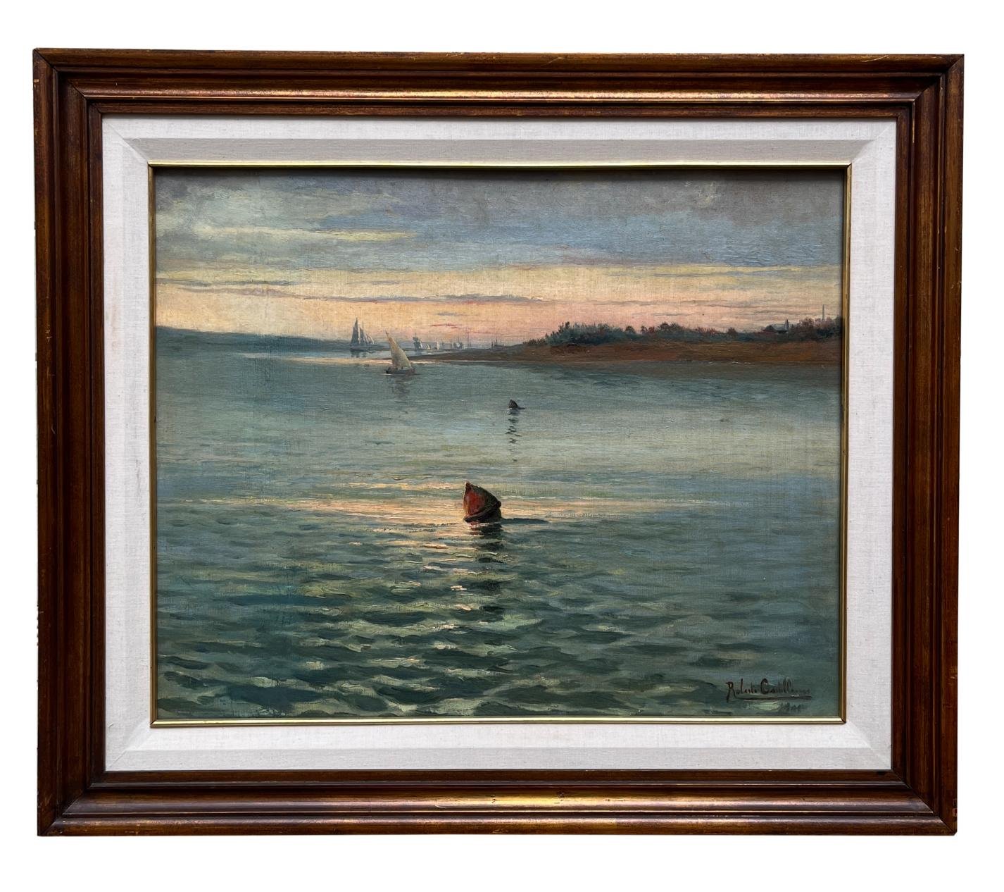 ROBERTO CASTELLANOS (escuela uruguaya, 1871-1942). Óleo sobre tela. «Marina.» Firmado abajo a la derecha. 50 x 63 cm.