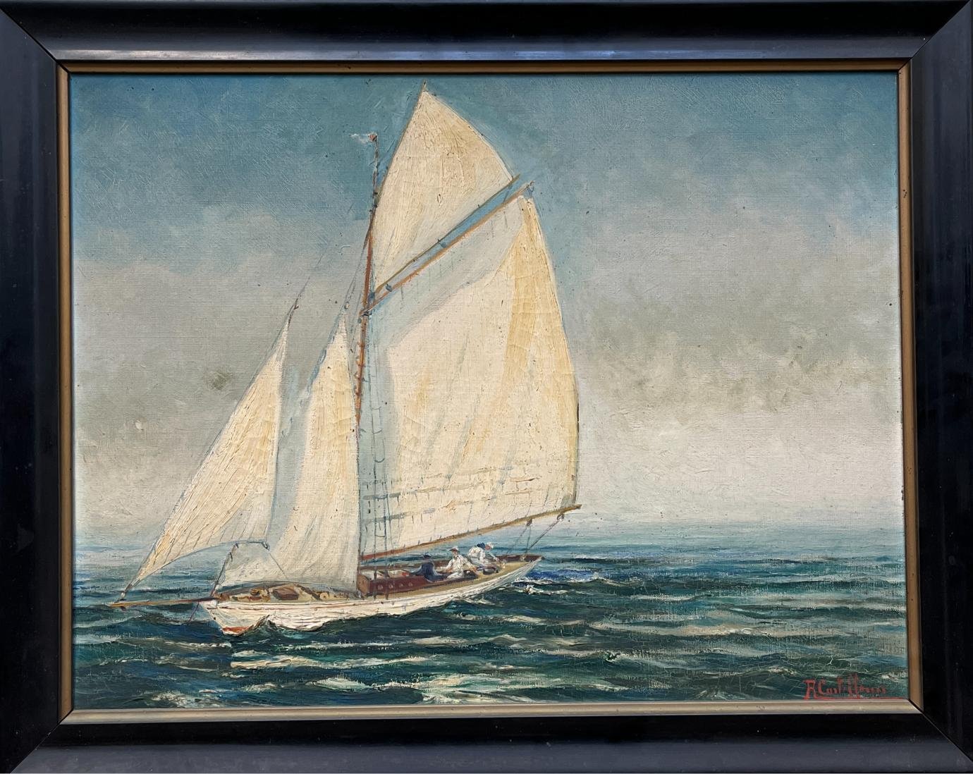 ROBERTO CASTELLANOS (Escuela uruguaya, 1871-1942) Óleo sobre tela Firmado abajo a la derecha «Velero» 46 x 60 cm