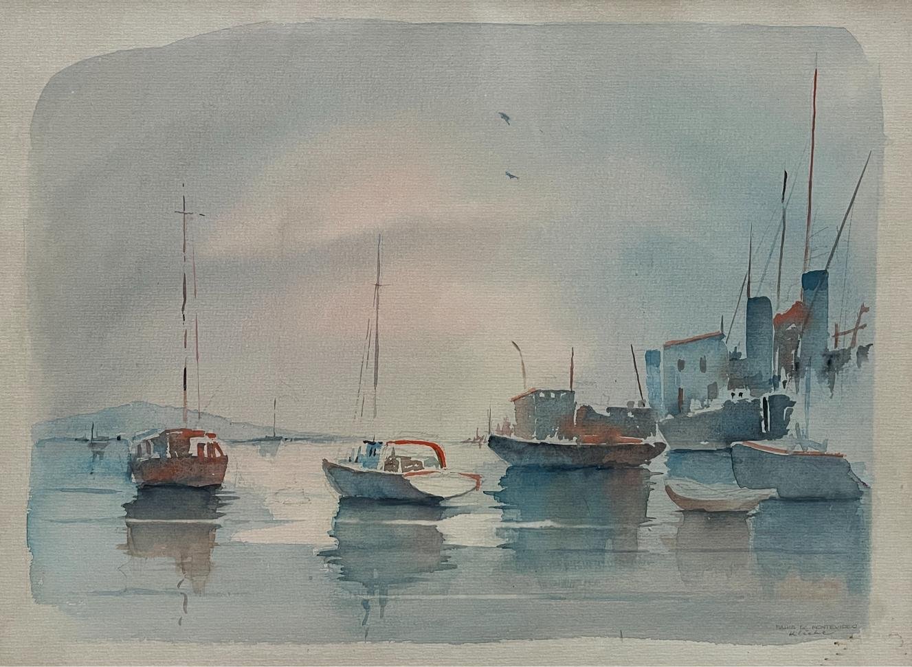 RODOLFO KLICHE (Escuela uruguaya, 1921-2007) Acuarela sobre cartulina «Puerto de Montevideo» Firmado y titulado abajo a la derecha 45 x 60 cm