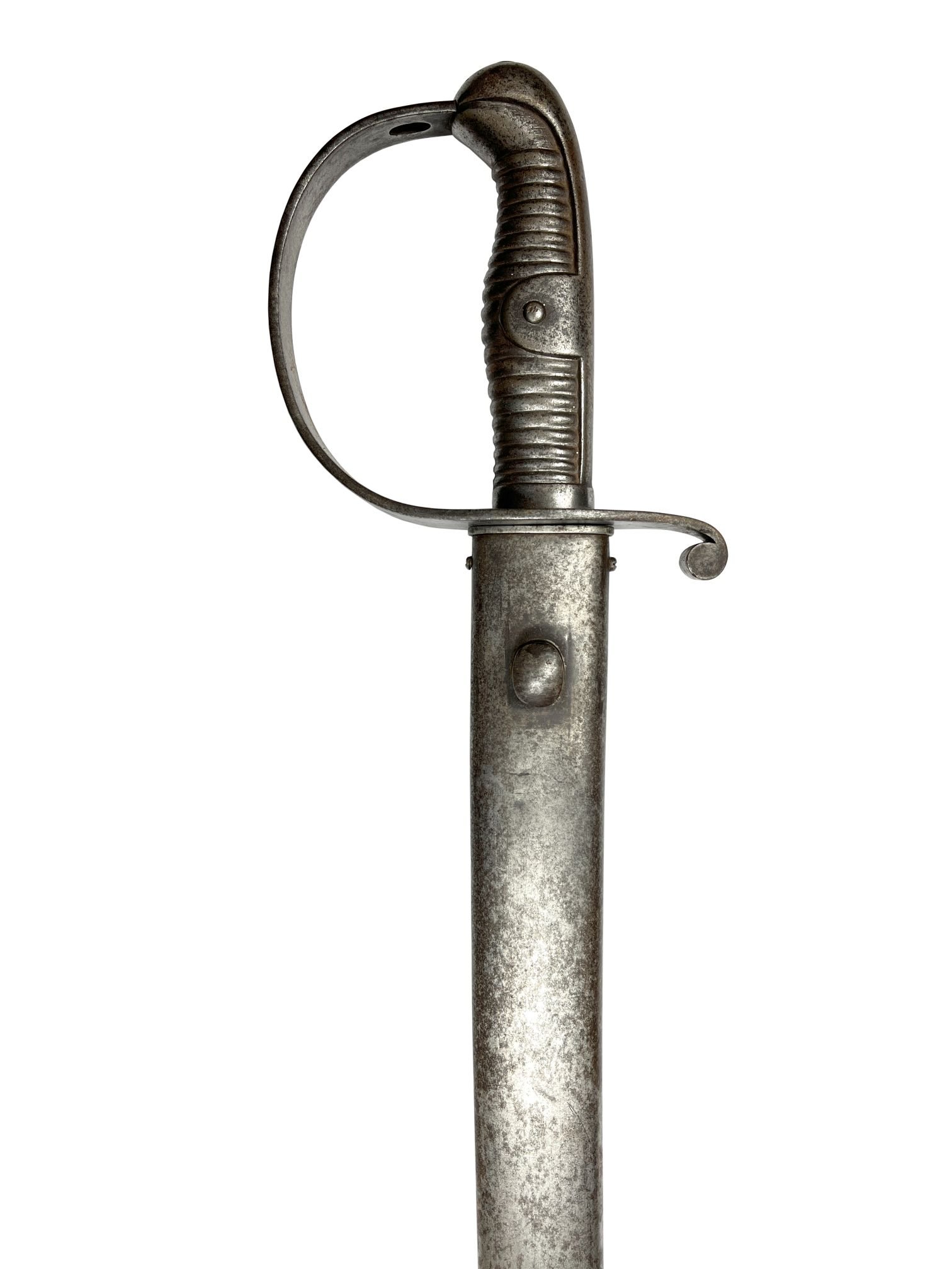 Sable argentino para oficial de artillería modelo 1898 fabricado por Kirschbaum. Hoja grabada al ácido con inscripción «Ejército Argentino». Empuñadura y guardamano en acero, con escudo de armas argentino grabado. Vaina en acero, original.