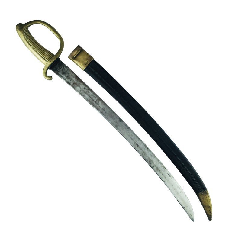 Sable napoleónico tipo briquet. Empuñadura con marcas regimentales. Vaina picasa original.