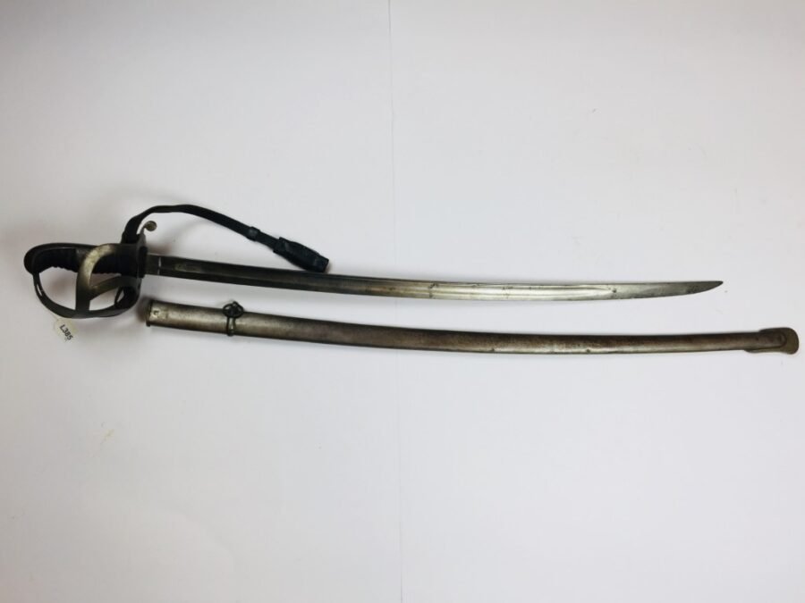 Sable curvo alemán modelo 1852. Utilizado por el ejército uruguayo entre 1905 y 1916, fabricado por Kirschbaum. Hoja tallada al ácido con inscripción «República del Uruguay», cazoleta calada y marcado «Junta A. Militar» y «escudo nacional uruguayo» y vaina en acero con una anilla.