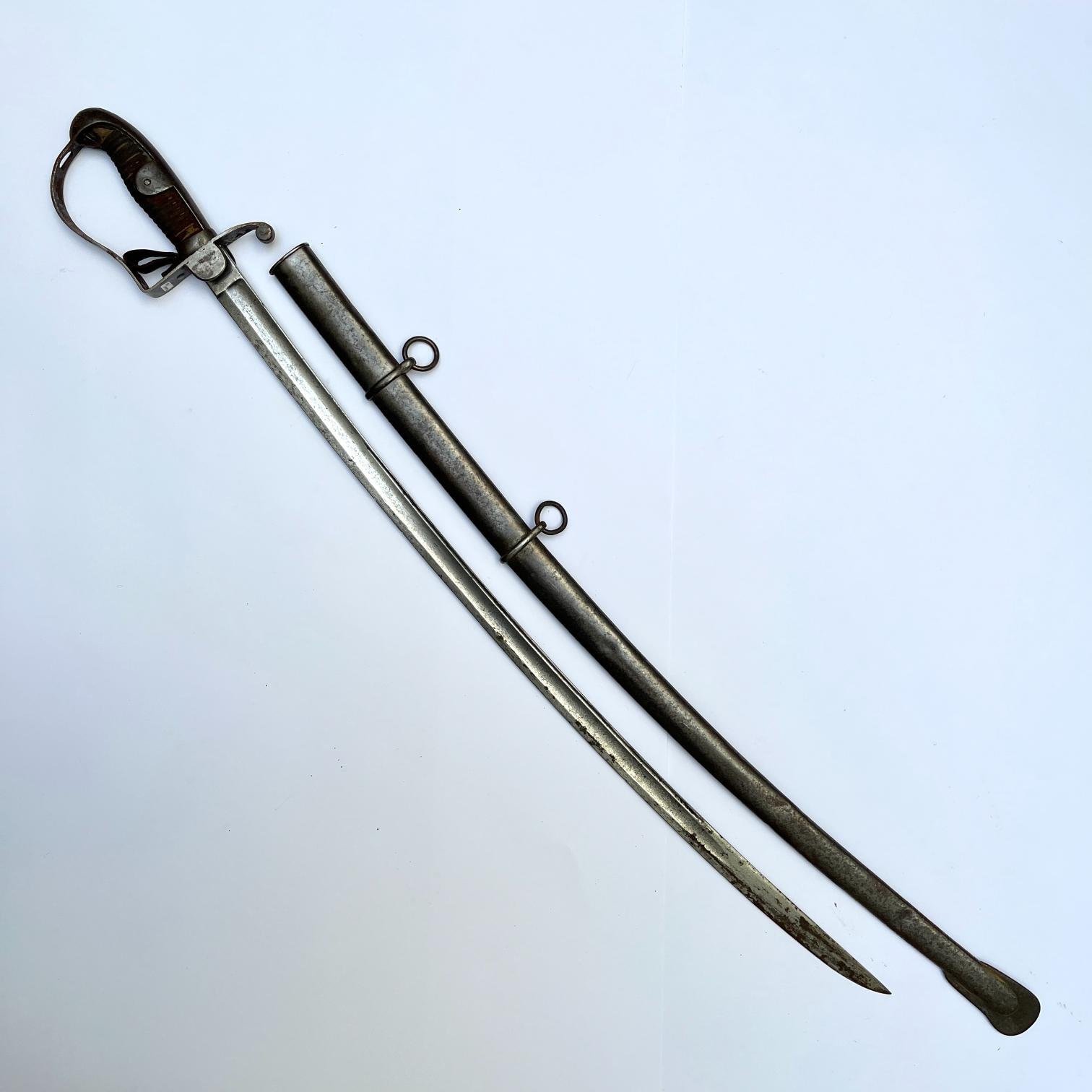 Sable estilo prusiano M1852/1905, modificado en la década de 1970 para dotación del regimiento de artillería simbólico «Santa Barbara» del Ejército Nacional de Uruguay. Guardamanos en hierro, empuñadura en madera gallonada con badana de cuero. Fabricado por Kirchsbaum, Solingen. Con vaina de dos argollas. Largo 100 cm.