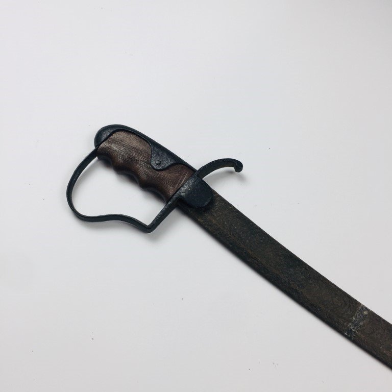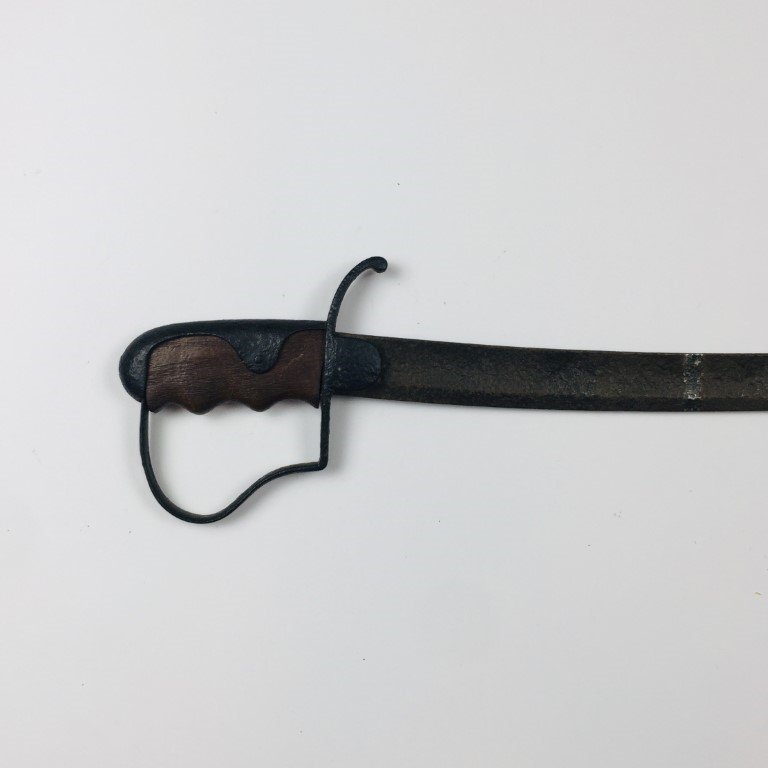 Sable inglés de caballería modelo 1796. Empuñadura en madera, no original. Con restos de óxido. Sin vaina. Largo total 90 cm.