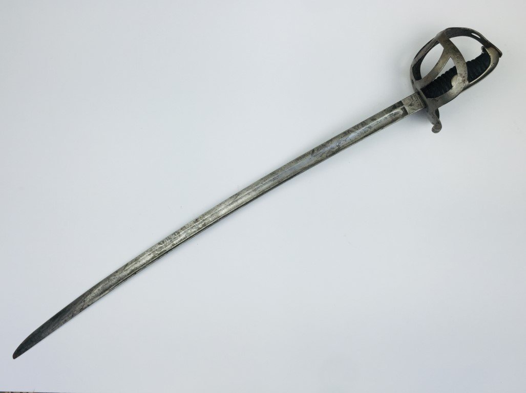 Sable prusiano modelo 1852. Fabricado por Kirschbaum. Arma que fuera de uso en el Ejército Uruguayo entre 1905 y 1916. Cazoleta en hierro calado, marcada con escudo nacional e inscripción «Junta A. Militar». Sin vaina.