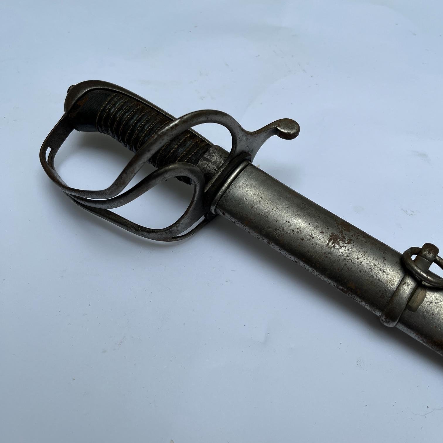 Sable utilizado por oficiales del ejército uruguayo modelo 1880. Guardamanos en acero, de tres ramales. Empuñadura en madera gallonada con torzal en alambre. Punzón «Fábrica de Armas de W.R. Kirchbaum, Solingen». Vaina de una anilla.