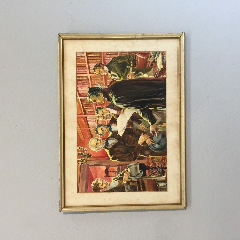 MARTÍNEZ KOCH, Santos. Acuarela sobre cartón. «Inauguración de la Biblioteca Nacional.» Firmado abajo a la derecha. 50 x 32.