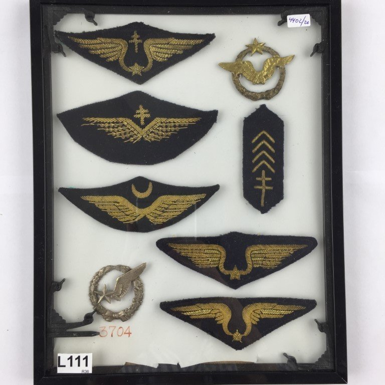 Lote de seis parches y dos pins pertenecientes al ejército del aire francés.