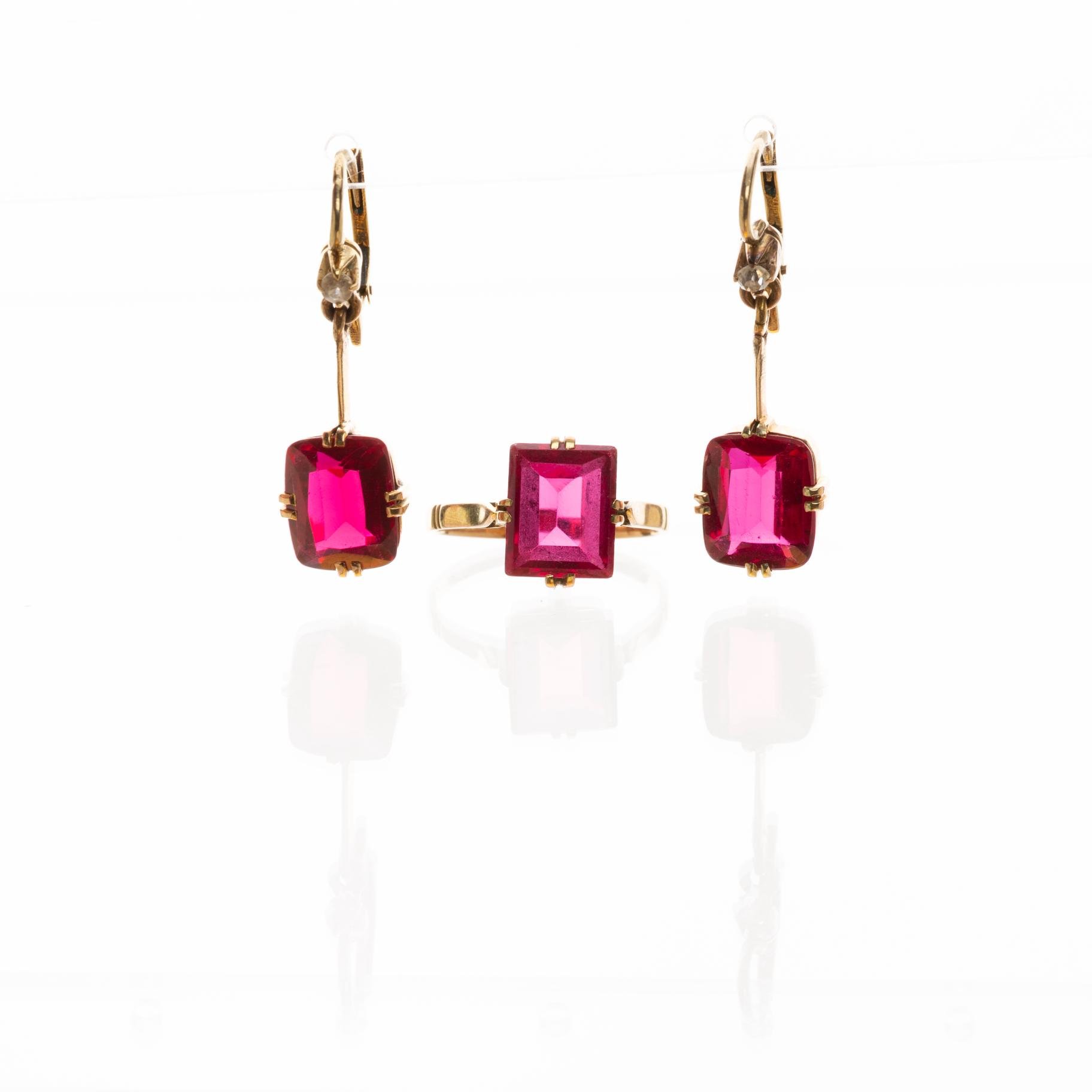 Set de anillo y caravanas en oro y rubí