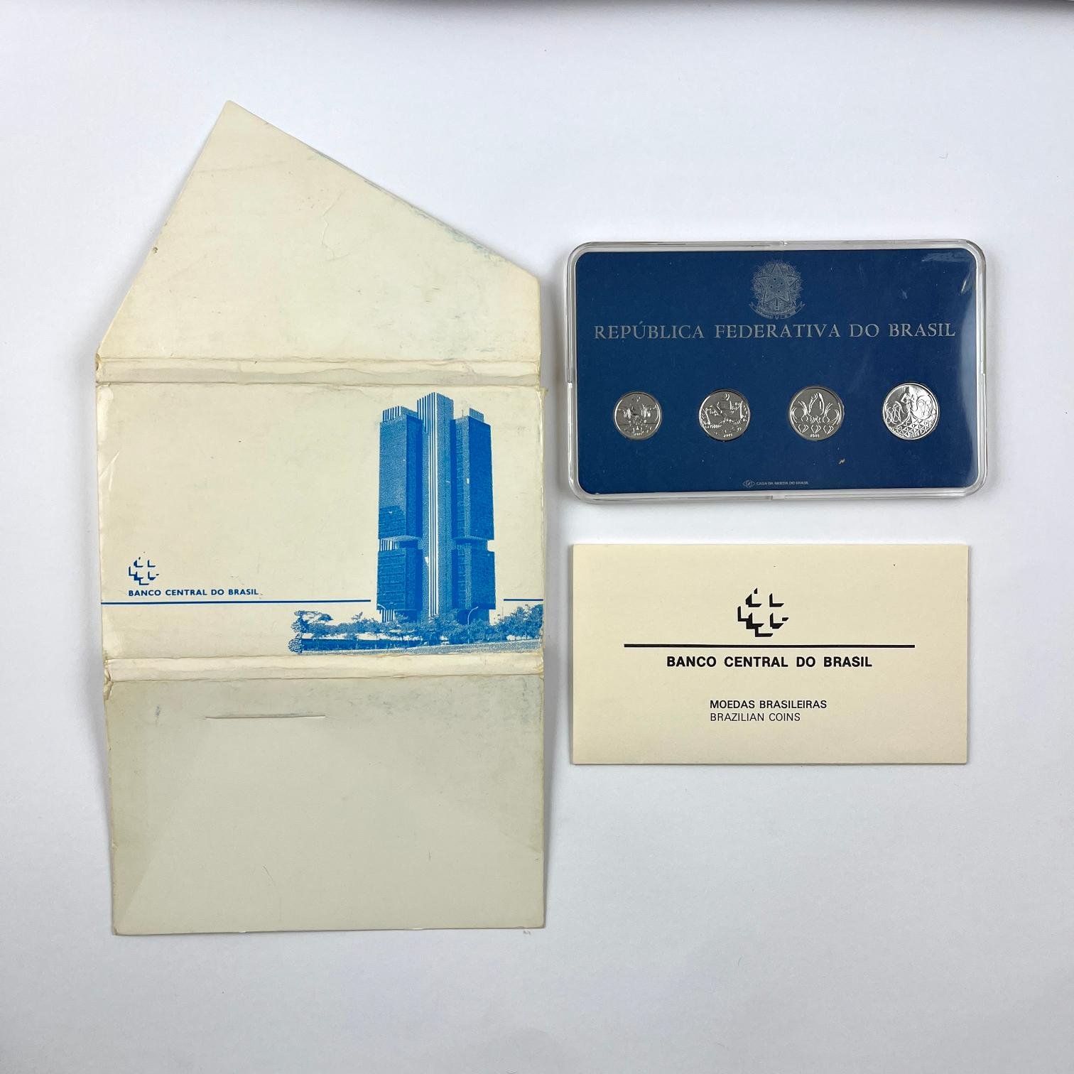 Set de cuatro monedas brasileñas denominaciones 1, 5, 10 y 50 centavos de cruzado novo del año 1989. Sellados “prova”. Encapsulados, con certificado y estuche del Banco Central do Brasil.