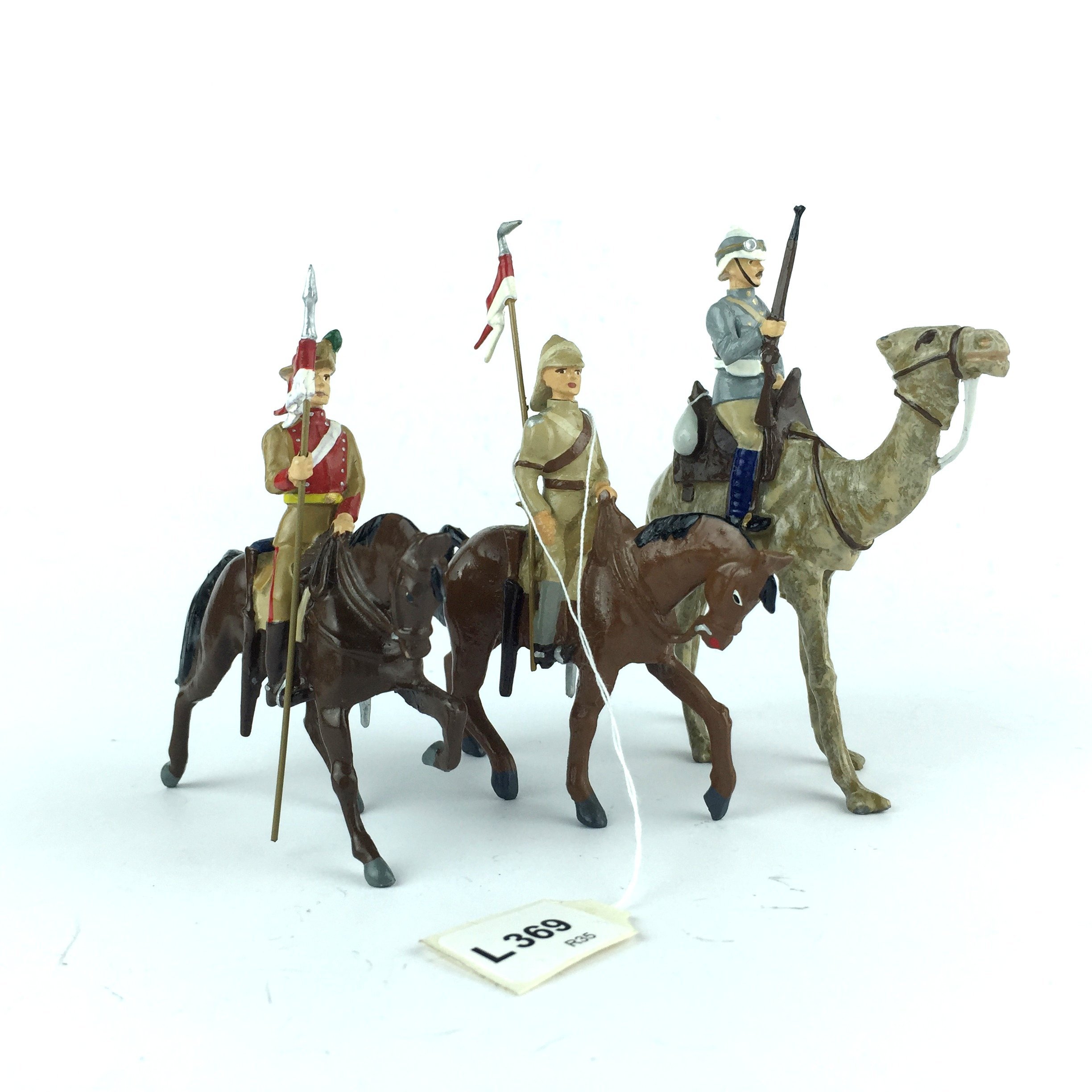 3 soldaditos de plomo marca Hiriart. Caballería colonial del ejército inglés.