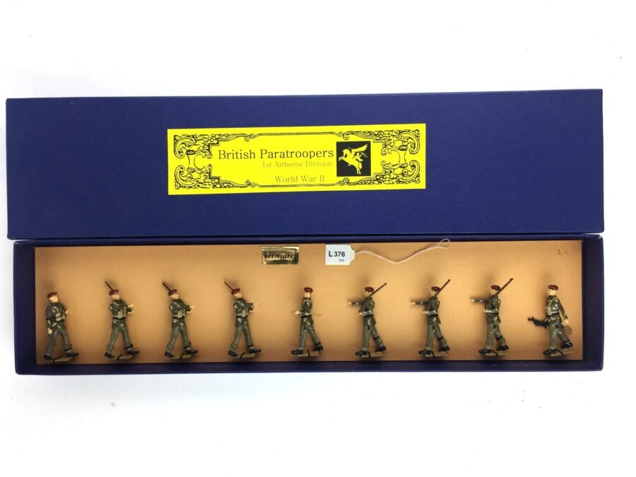 9 soldaditos de plomo marca Hiriart. Paratroopers ingleses. En caja original