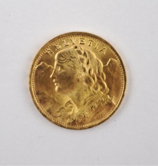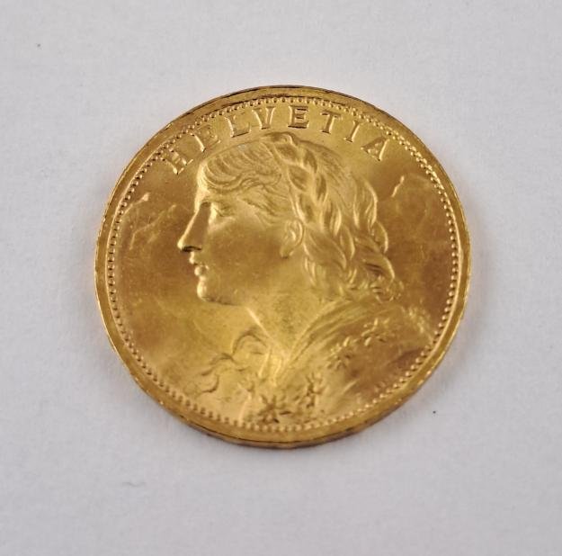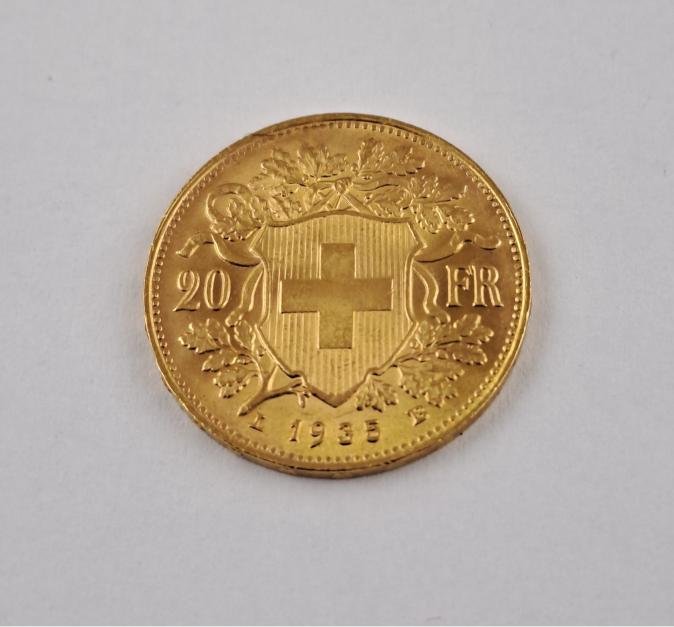 Moneda suiza en oro 900 denominación 20 francos del año 1935. Peso 6,45 gr.