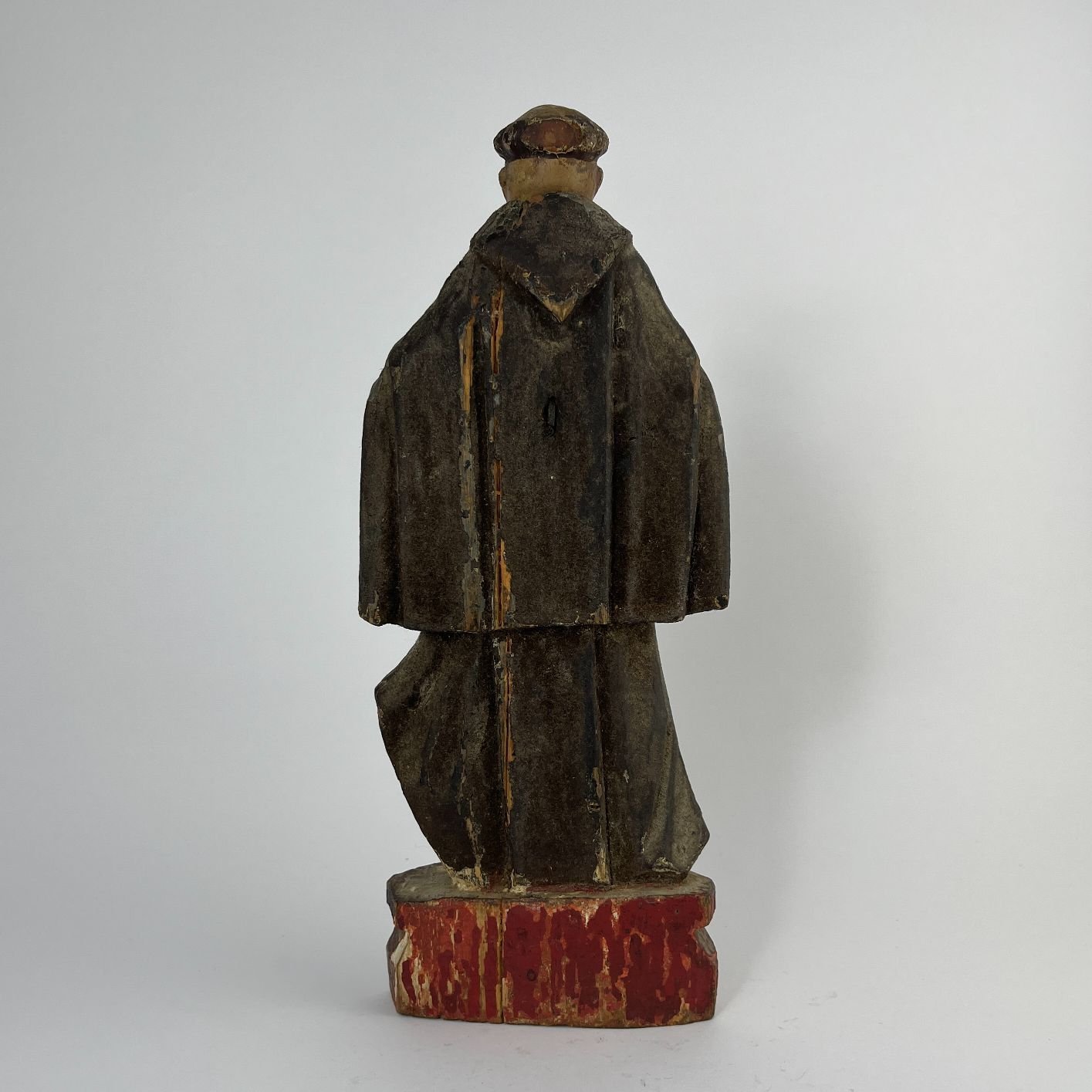 Escultura brasileña s. XVIII en madera tallada y policromada. «San Antonio.» Averías y faltantes. Alto 25 cm.