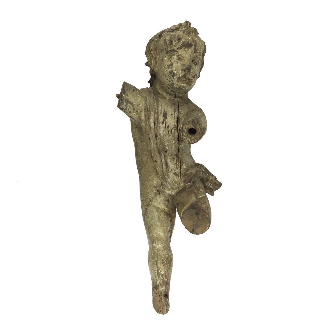 Talla en madera policromada siglo XVIII. «Niño Jesús.» Faltan piernas y brazos. 44 x 14 cm.