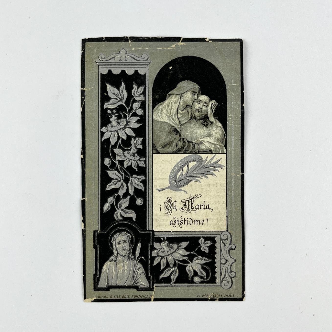 Tarjeta fúnebre en homenaje a Aparicio Saravia, con fotografía en miniatura del caudillo e inscripción manuscrita «Santa Clara, marzo 1o. de 1905» y leyenda impresa «Rogad a Dios por el alma del Gral. Aparicio Saravia, herido en Masoller el 1o. De setiembre de 1904 y muerto en el Brasil el 10 del mismo mes. Fue su patria su amor más entrañable. A ella consagró familia, fortuna y vida (…)».