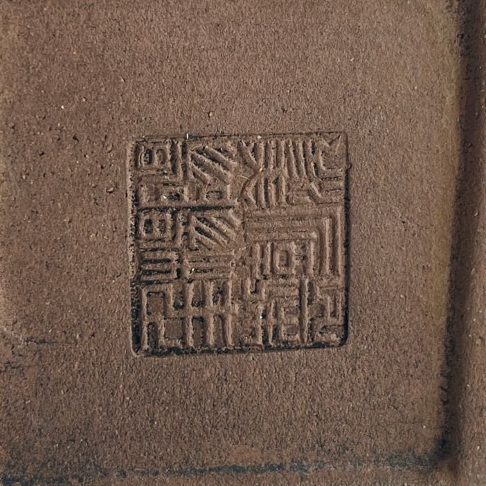 Tetera china en cerámica Yixing con asa, pico y pomo de tapa en jade celadón con virolas en plata. Marca del artista Yang Pen Nian en la base. 11 x 18 x 5.5 cm.