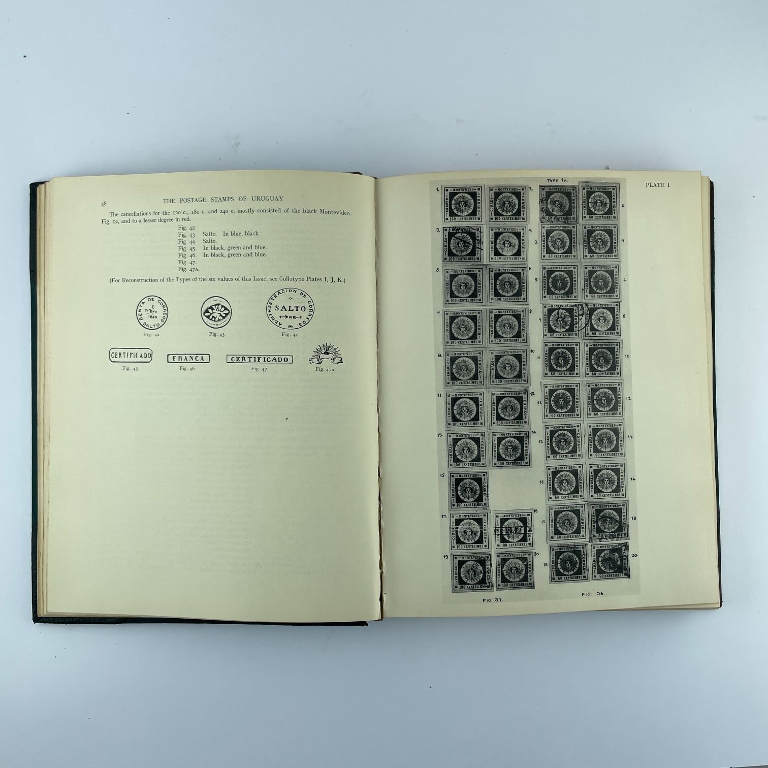 «The Postage Stamps of Uruguay.» Emanuel J. Lee, “Honorary member of the Edinburgh Philatelic Society”. 388 p. William Brendon & Son. Londres, 1931. Ejemplar numerado a mano “76” de 200, encuadernado en tres cuartos de cuero. Junto con: «El correo del Uruguay. Apuntes para su historia. 1825 a 1865.» Isidoro de María. Tipografía Escuela Nacional de Artes y Oficios. Montevideo, 1905. Encuadernación averiada, falta lomo.
