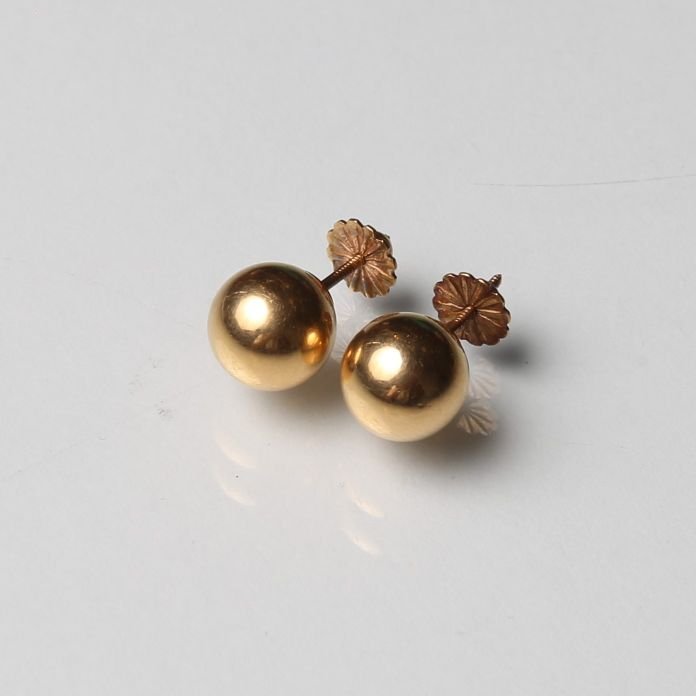 Par de tornillos esféricos en oro 18 K amarillo. Diámetro 8 mm. Peso total 2.5 gr.