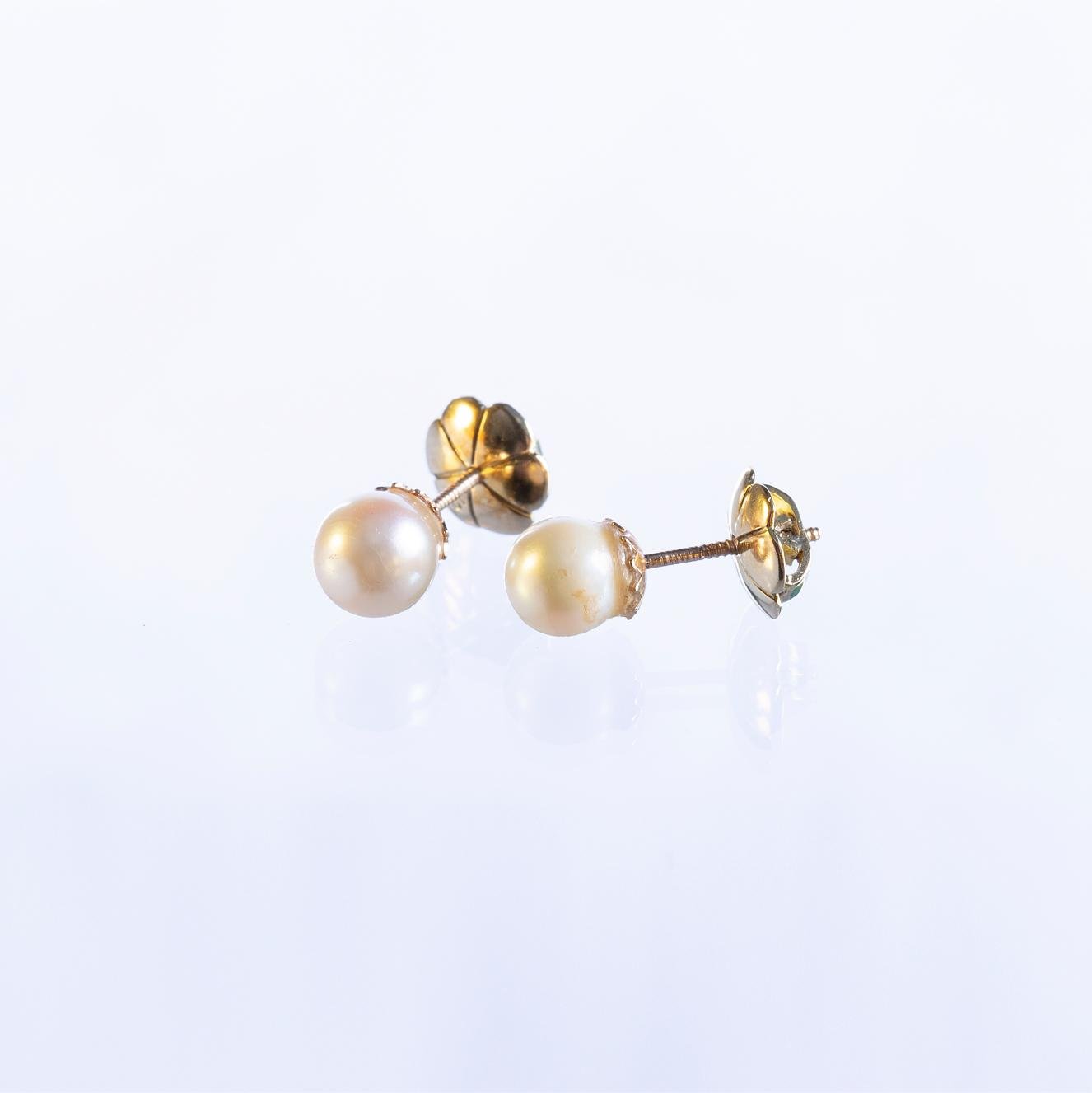Par de tornillos en oro 18 K amarillo con perla de cultivo central de un diámetro de 6,5 mm cada uno. Peso bruto 2,5 gr.