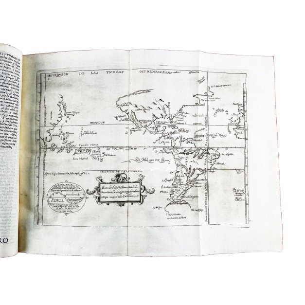Título capital de la bibliofilia americana. Crónica del México virreinal. Raro. En 4° (29 x 19,5 cm), tres volúmenes encuadernados en pasta, con su lomo decorado con florones y títulos dorados. Al dorso de las portadas, sello húmedo y leyendas parcialmente quitados. Texto a dos columnas, con viñetas y letras capitulares. Tomo I: Portada, 16 h., mapa plegado, 768 p., 36 h., con el “Índice de las cosas más notables […]”. Tomo II: Portada, 6 h., 623 p., 1 p.., 27 h., con el “Índice […]”. Tomo III: Portada, 4 h., 4 p., 634 p., 20 h., con el “Índice […]”. En el tomo III, pequeño taladro en las primeras hojas y refilado el margen superior en la hoja 8. El ejemplar tiene un sello quitado en los tres tomos, en el colofón. Brunet, V, 886. Medina, BHA, n. 2491, no menciona el mapa, al igual que Palau, n. 335033. Ex biblioteca de Juan E. Pivel Devoto.