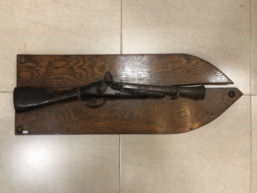 Trabuco naranjero de avancarga, sistema a pedernal o de chispa. Caño en hierro.