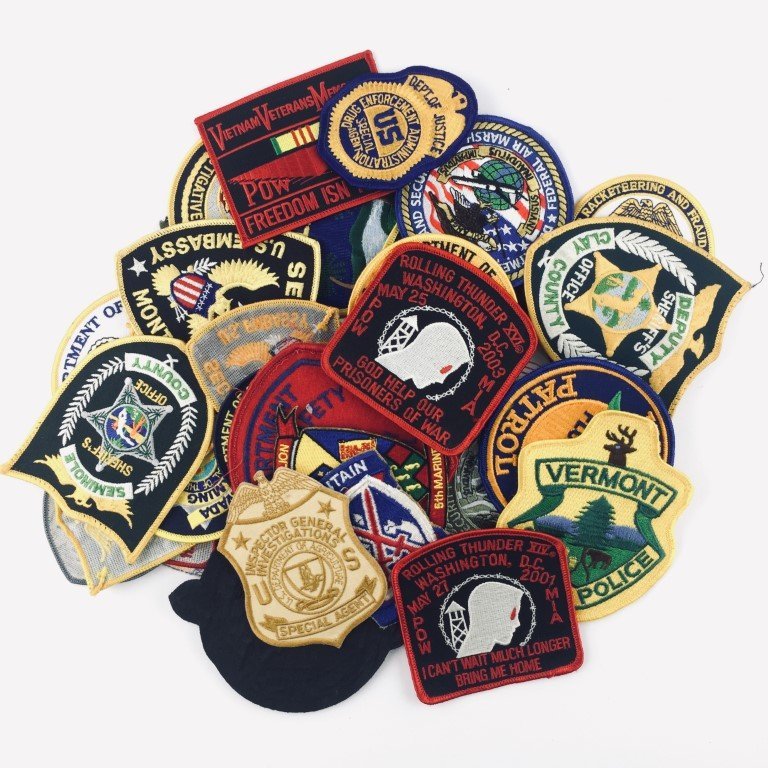 Lote de treinta y cinco parches estadounidenses, en tela bordada.