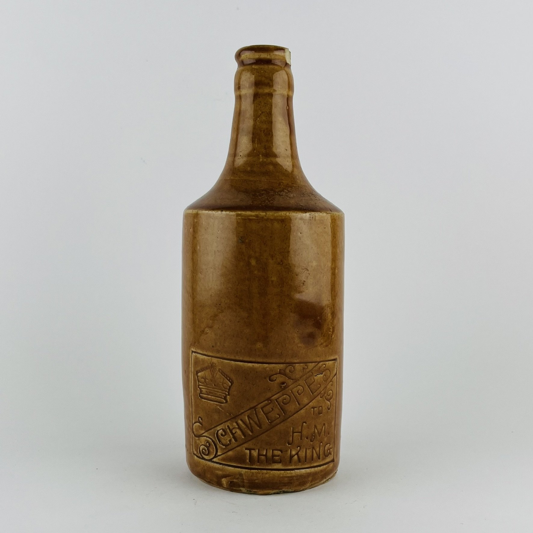«Schweppes To H.M. The King.» Marca incisa. Sello inciso del fabricante Govancroft Co., Glasgow.