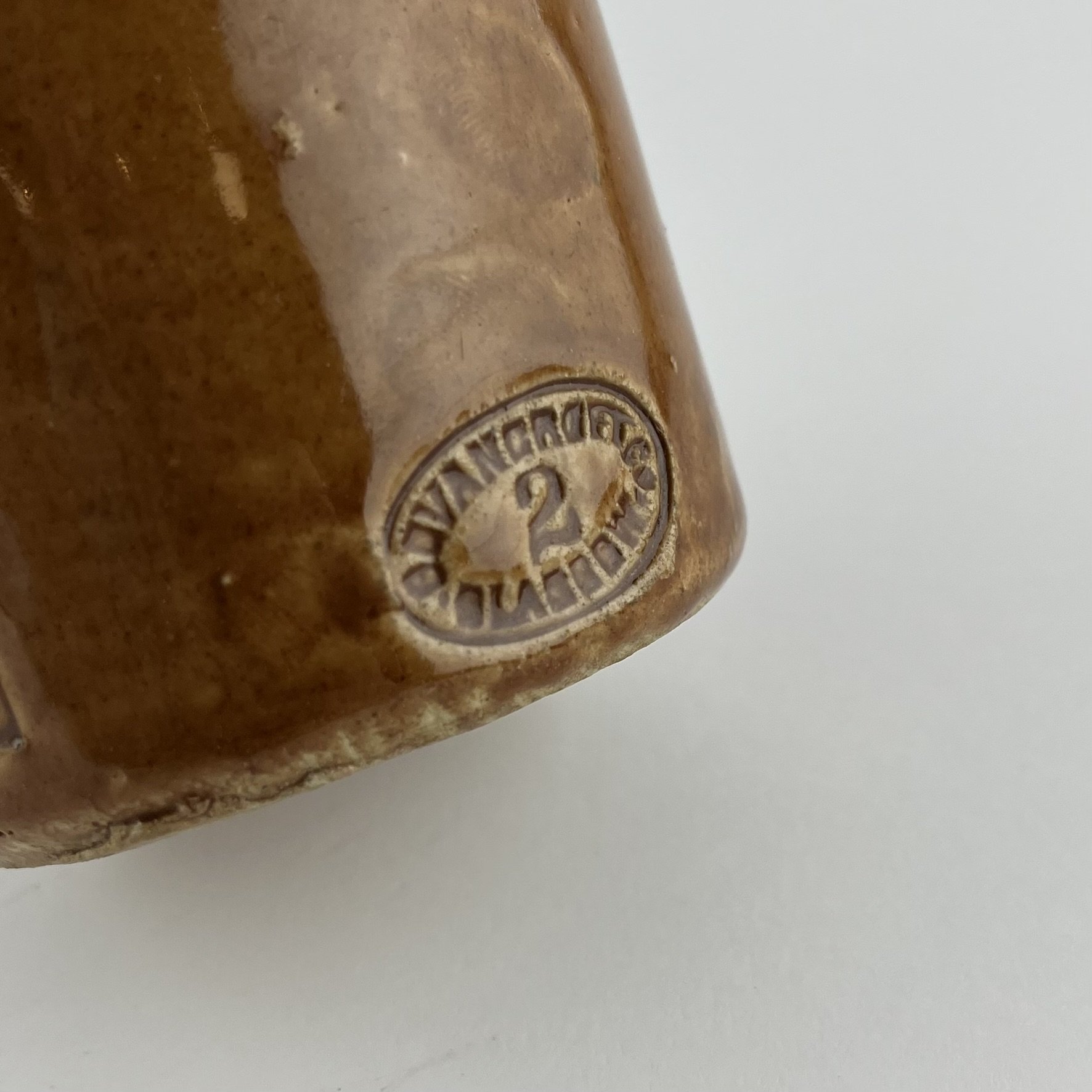 «Bishop’s Stortford Mineral Waters Co. Trade Mark.» En dos tonos. Marca estampada en negro. Sello inciso del fabricante Pearson & Co., Whittington Moor, Inglaterra.