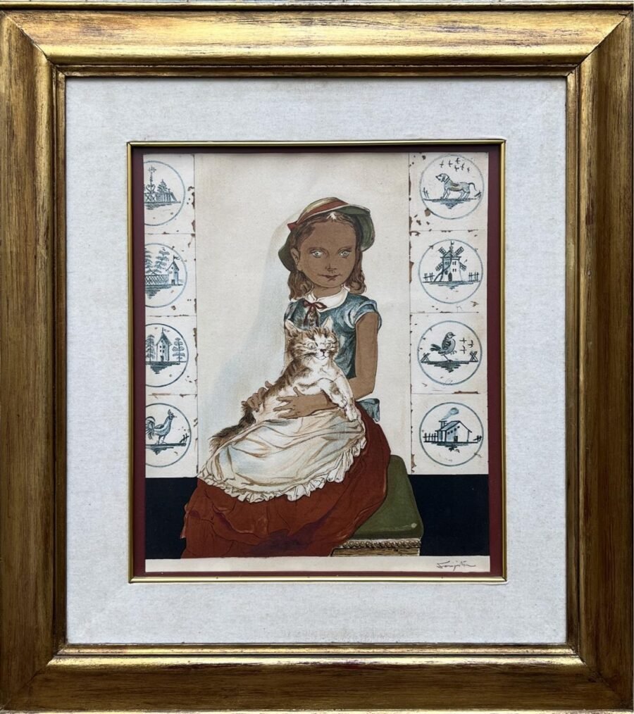 TSUGUHARU FOUJITA (Escuela japonesa, 1886-1968) Serigrafía «Niña con gato» Firmado a lápiz abajo a la derecha 42 x 35 cm