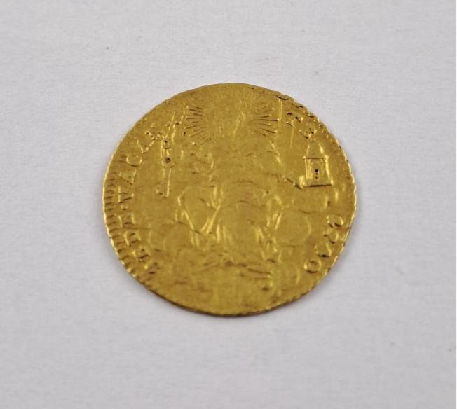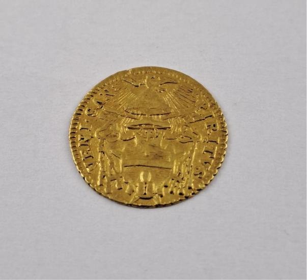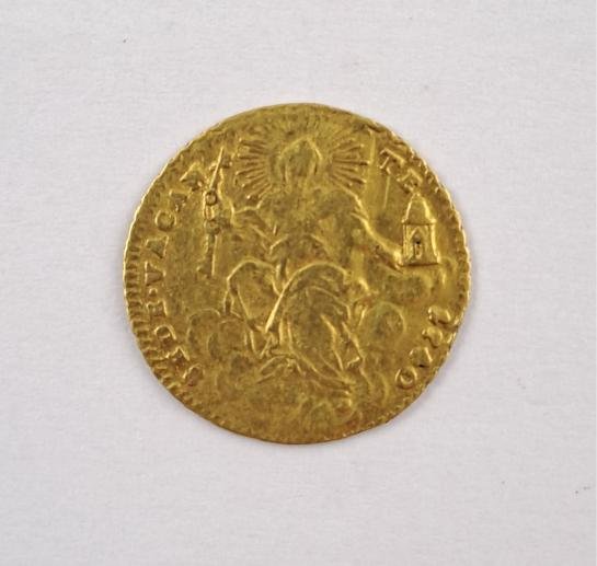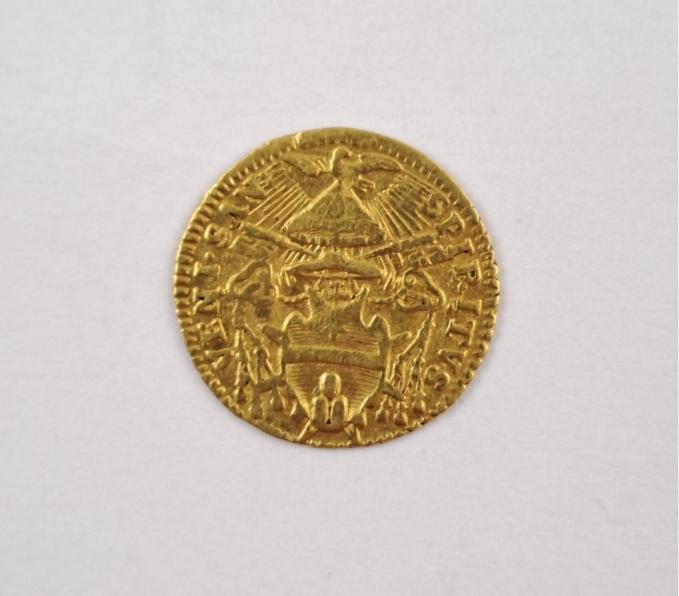 Moneda de los Estados Pontificios, Vaticano, en oro 998 época “Sede Vacante”, denominación mezzo zecchino del año 1740. Peso 1,69 gr.
