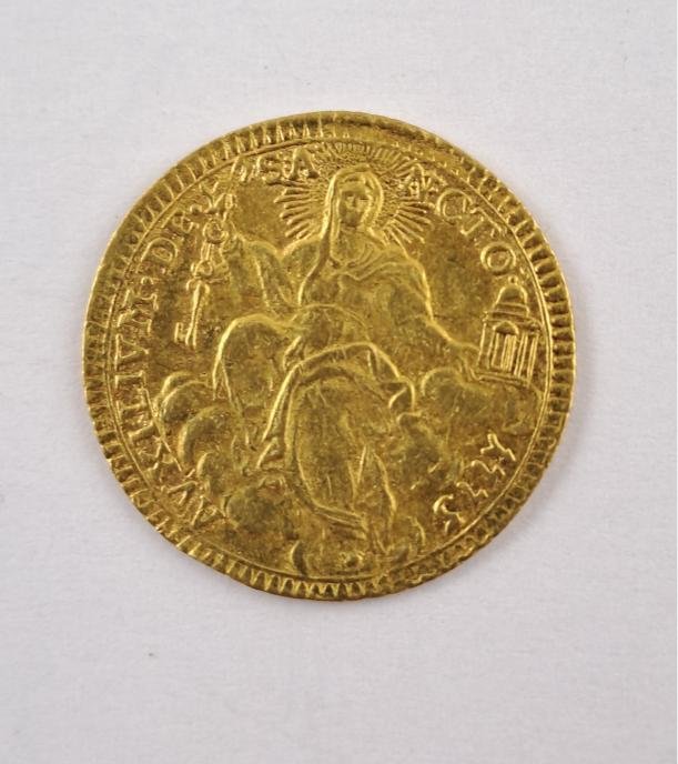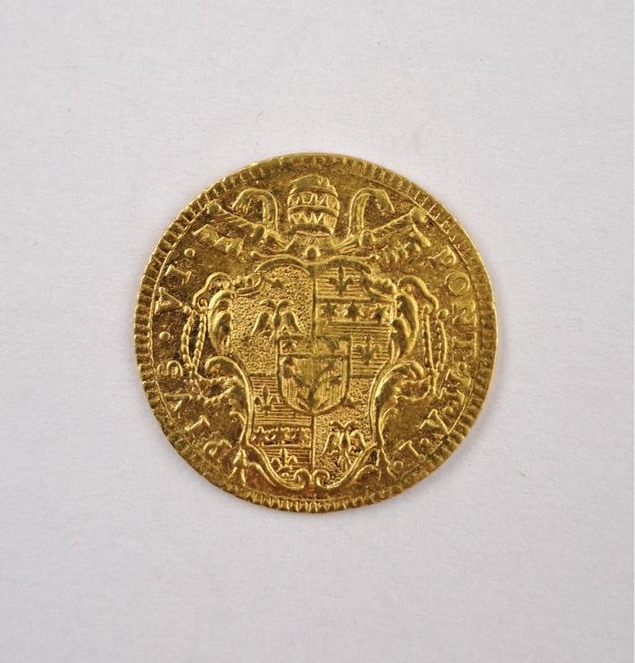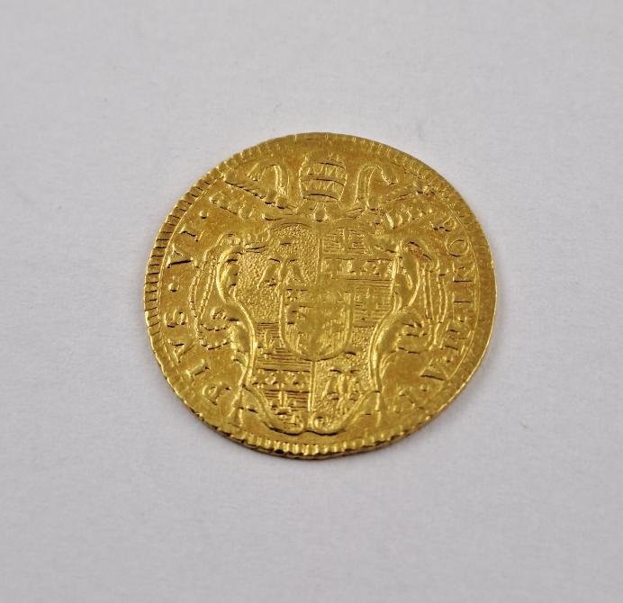 Moneda de los Estados Pontificios, Vaticano, en oro 998 época Pío VI denominación zecchino del año 1775. Peso 3,41 gr.
