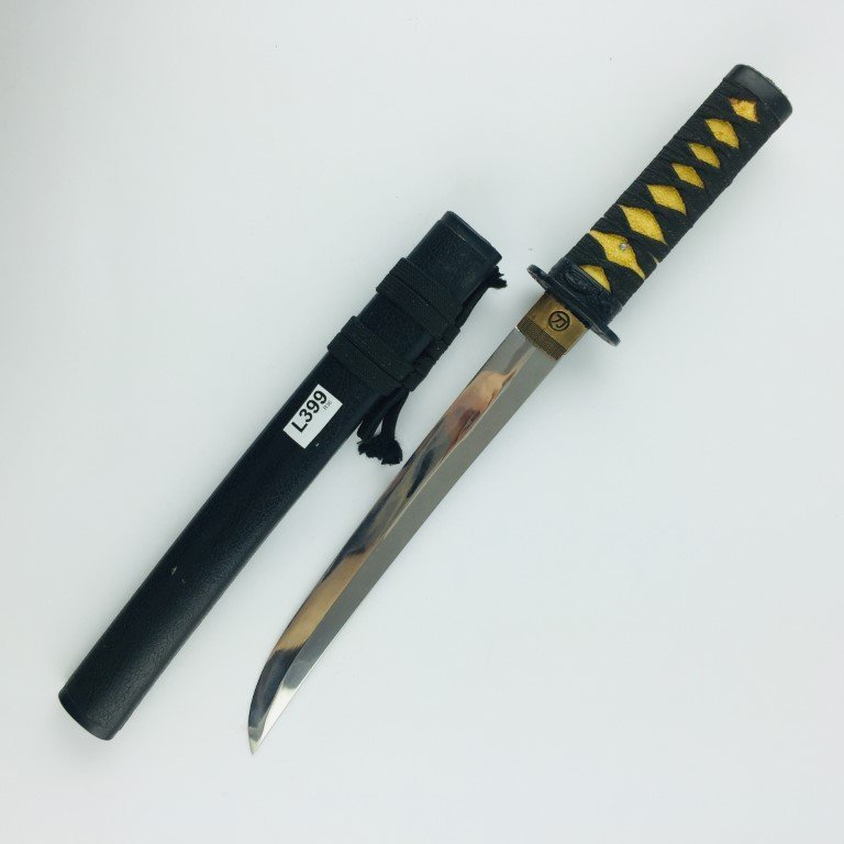 Wakisahi japonés con empuñadura en polímero símil piel de raya. Largo total 43 cm.