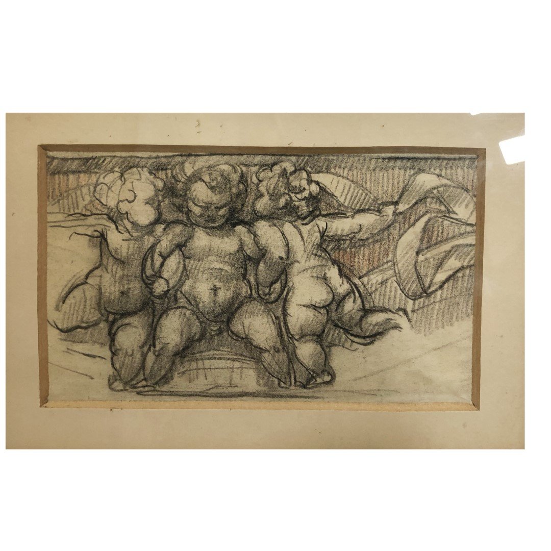 ZORRILLA DE SAN MARTÍN, José Luis (escuela uruguaya, 1891-1975). Lápiz y lápiz color sobre papel. “Niños.” Sin firma. 11 x 19 cm.