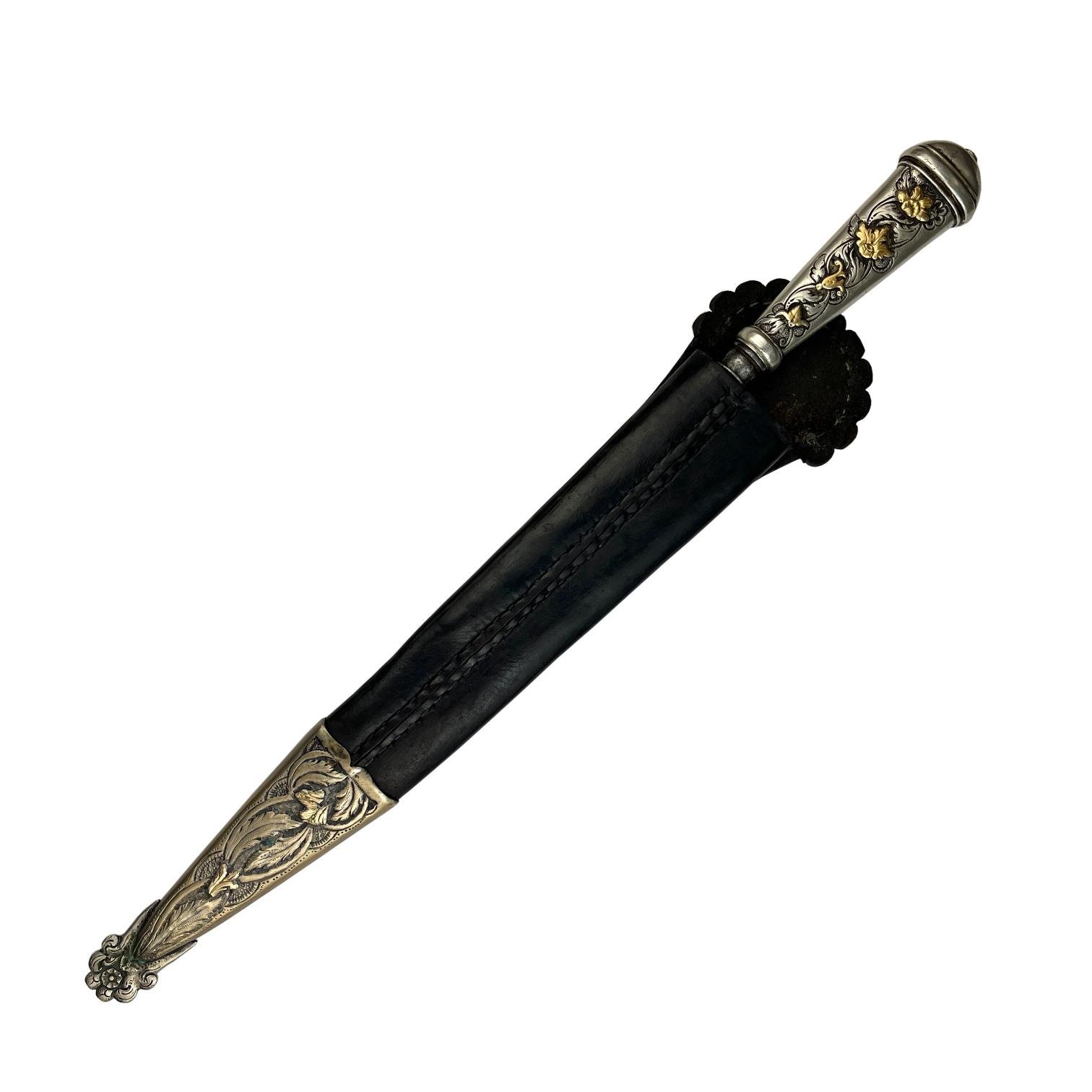 Set cuchillo criollo y tenedor de trichar en plata y oro