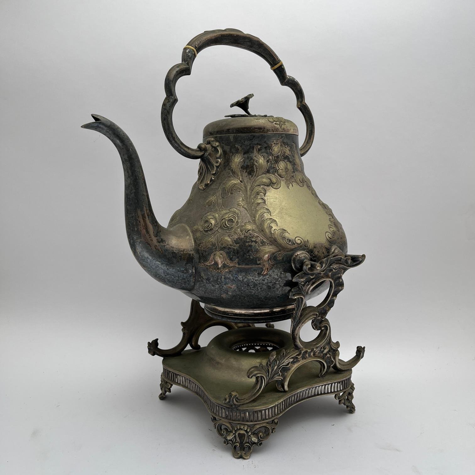 Samovar europeo en metal plateado