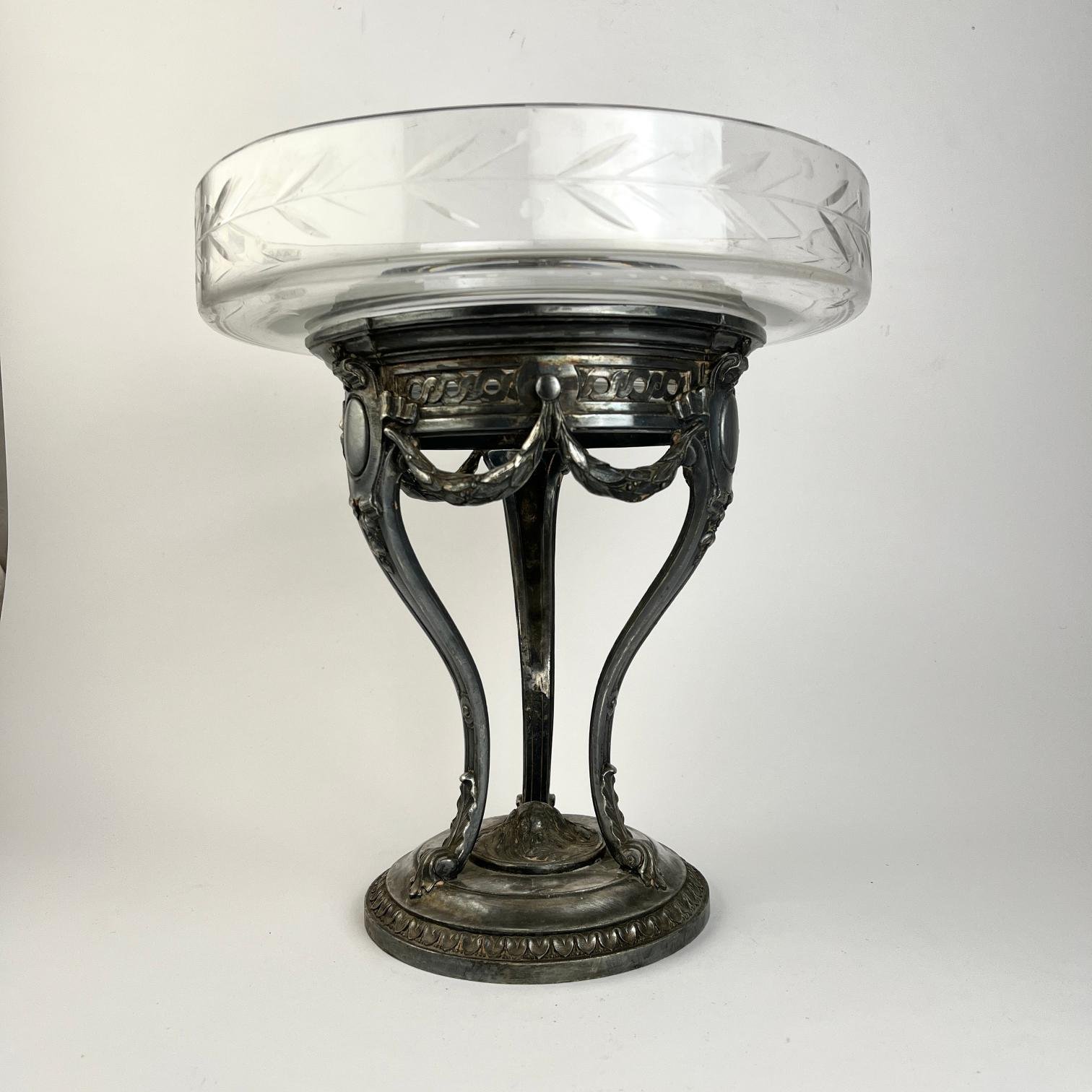 Centro de mesa francés en metal plateado